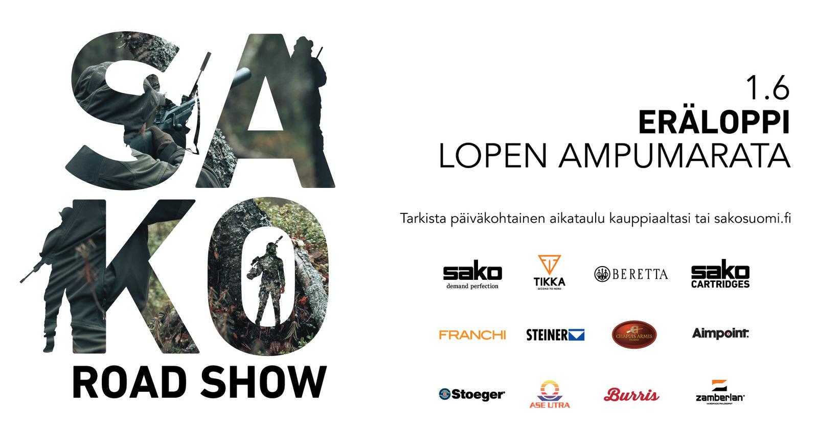 <div class="cxmmr5t8 oygrvhab hcukyx3x c1et5uql o9v6fnle"><span class="d2edcug0 hpfvmrgz qv66sw1b c1et5uql lr9zc1uh a8c37x1j fe6kdd0r mau55g9w c8b282yb keod5gw0 nxhoafnm aigsh9s9 d3f4x2em iv3no6db jq4qci2q a3bd9o3v b1v8xokw oo9gr5id" dir="auto">Suomen suurin metsästys- ja urheiluammunnan kiertue Sako Road Show kulkee tänä vuonna läpi Suomen tuoden esille uutuuksia ja mahdollisuuksia testata ja verrata eri merkkisiä kivääreitä, haulikoita, optiikkaa ja varusteita. Mukana kiertueella Suomen suosituimpia tuotteita sekä uutuuksia, joita et vielä ole päässyt kokeilemaan.</span></div>